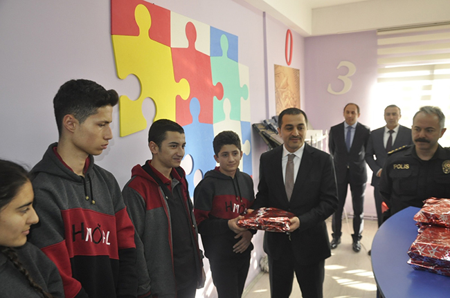 Vali Öksüz gazetecilere yaptığı açıklamada, İl Emniyet Müdürlüğümüzün Toplum Destekli Polislik Şube Müdürlüğümüzün etkinliği için burada bulunuyoruz. Biz artık Emniyet Müdürlüğümüz olarak sadece önleyici kolluk görevimizi sahada asayiş olaylarında göstermiyoruz. Bunun dışında bulunduğumuz ilde yaşayan insanlarımızın her sorunuyla ilgilenme, her ihtiyacıyla ilgilenme görevini de yerine getiriyoruz. Burada Toplum Destekli Polislik Şube Müdürlüğümüz çeşitli sosyal kültürel faaliyetlerde bulunuyor. Buradaki etkinlikte bunun bir parçası. Amacımız çocuklarımızın, gençlerimizin boş zamanlarını daha iyi geçirmesini sağlamak, onların sosyal gelişimine katkıda bulunmak, ilgilerini yeteneklerini daha ileriyle taşımak, onun için bazı sportif etkinlikler düzenlendi, gençlerimize çeşitli sportif kurslar verildi. Bu kursların sonucunda onlar çeşitli gezilere götürüldü. Bu da onun son halkası. Çeşitli okullarımıza kitap dağıtımında bulunuyoruz. Kütüphanelerine katkıda bulunarak, kütüphanelerini zenginleştirmeye çalışıyoruz. İl Emniyet Müdürlüğümüz bu etkinlik çerçevesinde bin adet kitabın dağıtımını okullarımıza yapacak.” dedi.