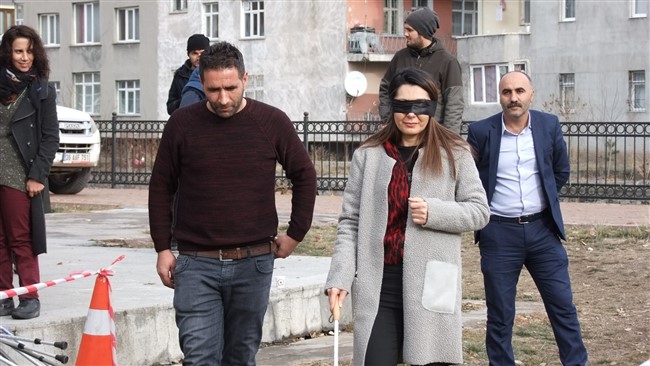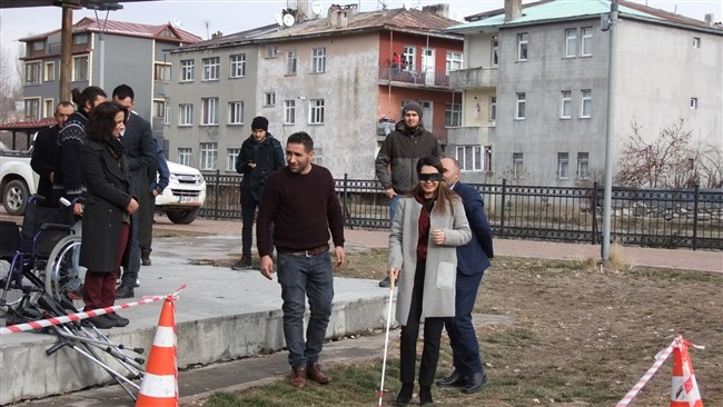 Yapılan konuşmaların ardından engelli empati parkuruna geçilerek katılımcılardan Belediye Başka Yardımcısı Şevin Alaca gözlerini bağlatarak parkuru geçmeye çalıştı. Görme engellilerin yaşadıkları zorluğun empatisini kurmak için gerçekleştirilen bu empati parkurunda katılımcılar da gözlerini bağlayıp yürümeye çalıştılar.