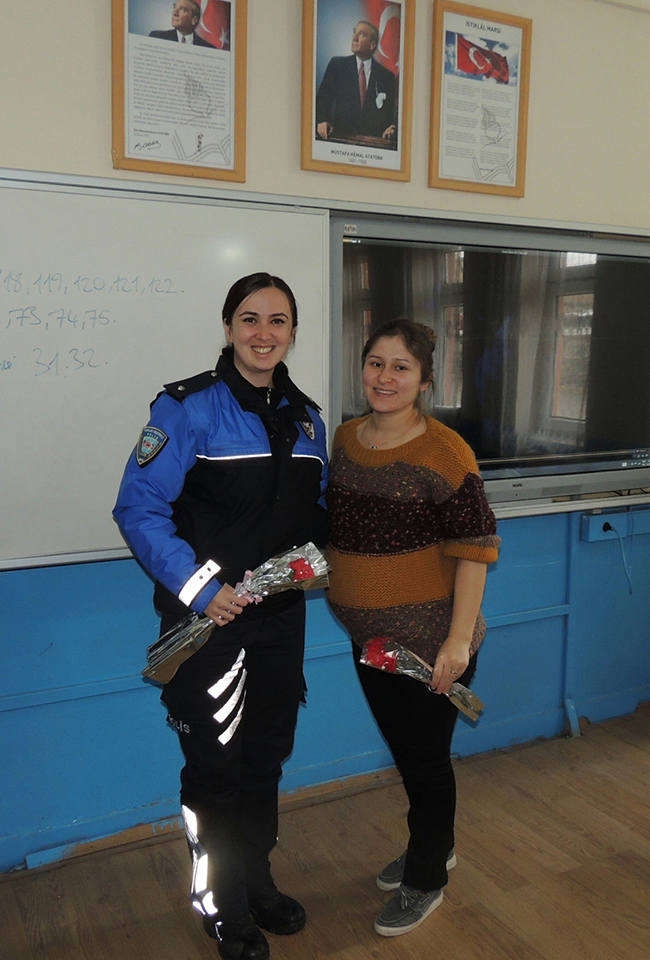 Kars Emniyet Müdürlüğü Toplum Destekli Polislik Şube Müdürlüğü görevlileri tarafından “24 Kasım Öğretmenler Günü” münasebetiyle Emniyet Müdürlüğünün her zaman öğretmenlerin yanında olduğunu hissettirmek amacıyla Cumhuriyet Ortaokulu ziyaret ederek öğretmenlere karanfil hediye etti.