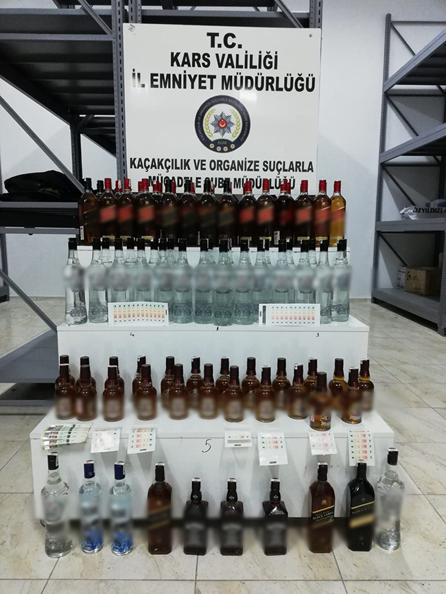 Kars İl Emniyet Müdürlüğü, Kaçakçılık ve Organize Suçlarla Mücadele ve Narkotik Suçlarla Mücadele Şube Müdürlüğü görevlileri il merkezinde ve ilçelerinde sahte veya kaçak alkollü içki satışı yapan veya imalatta bulunan, uyuşturucu kullanan veya tacirliğini yapan şahısların deşifre edilerek yakalanmalarına yönelik operasyon düzenledi.