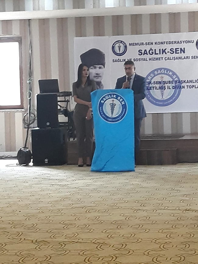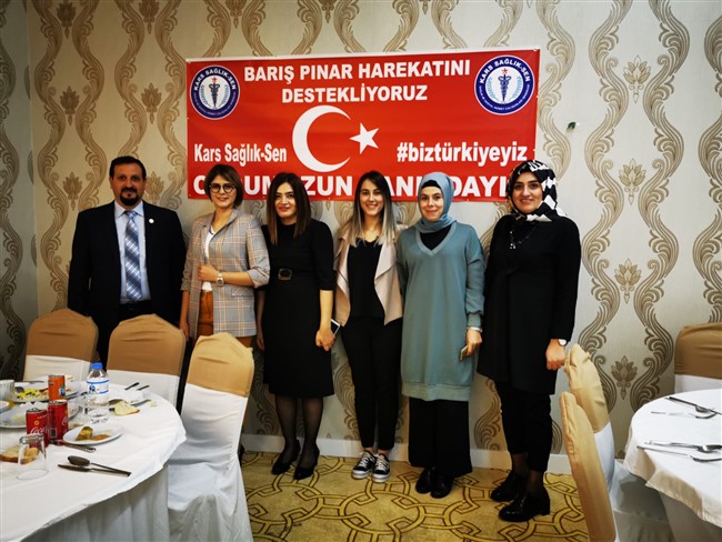 Toplantının açılış konuşmasını yapan Kars Sağlık-Sen Şube Başkanı Muharrem Koskalan, “Şuan Fırat’ın doğusunda PKK terör örgütüne karşı şanlı ordumuzun düzenlemiş olduğu Barış Pınarı Hareketini destekliyoruz. Ordumuzun arkadaşındayız. Tüm şehitlerimize Allah’tan rahmet, yaralılara da şifalar dilerim.” dedi.