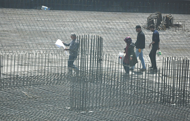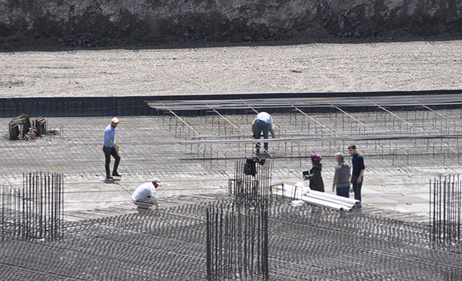 Kars’ın en işlek caddelerinden birisi olan Faikbey Caddesi eski işhanının yerine yapılacak olan Sultan Alparslan Külliyesi’nin temelindeki çalışmalar sürüyor. Bir taraftan beton atılırken, diğer taraftan 11 kişilik demir ustası külliyenin zeminine adeta demirden şekil veriyorlar.