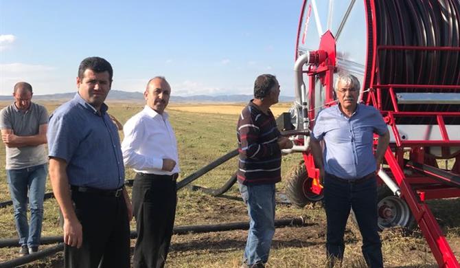 Kars Tarım ve Orman Müdürü Dr. Hüseyin Düzgün, “Hükümetimiz tarafından yapılan barajların sonrasında sulanabilen arazi miktarımız artmaktadır. Bu bağlamda; Tarım ve Orman Bakanlığı 14. Etap Kırsal kalkınma Destekleri kapsamında Bireysel Sulama Sistemleri, yüzde 50 hibe destekleri kapsamında Akyaka Esenyayla köyü çiftçilerinden Yaver Ülker'in almış olduğu “Otomatik Tamburlu Sulama Makinesi’ne” yüzde 50 hibe desteği sağlanmıştır” dedi.