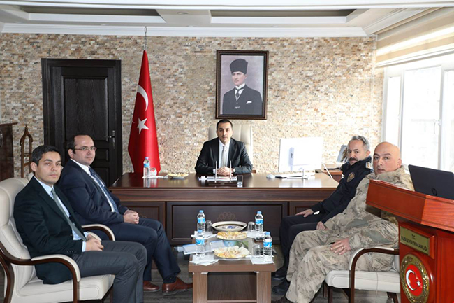 Susuz Kaymakamı Tunahan Çil tarafından Kaymakamlık binası önünde karşılanan Vali Öksüz, Kaymakam Tunahan Çil’den brifing aldı.