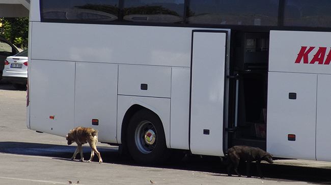 Şehir merkezinde bulunan başıboş köpekler Kars Otobüs Terminalinde de gelen yolcular için tehlike oluşturuyor.