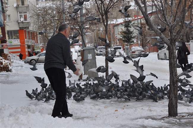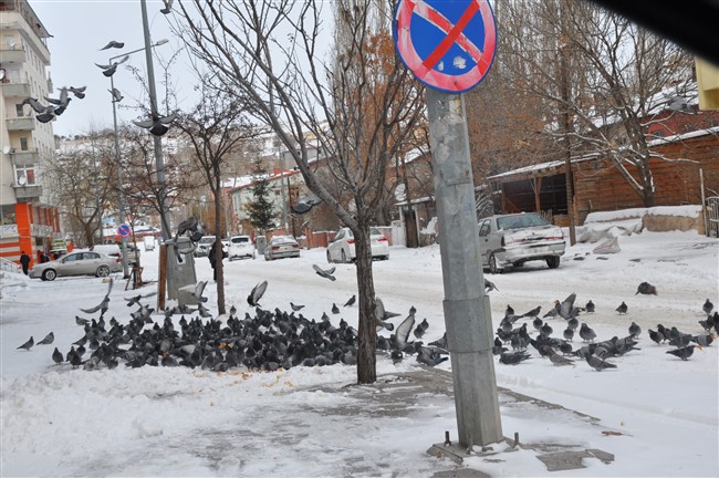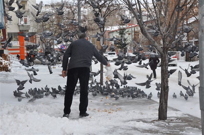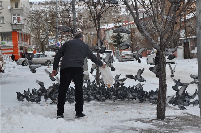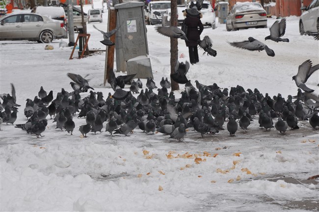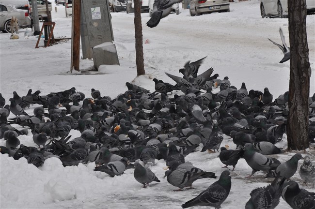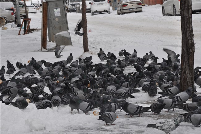 Kars’ta etkili olan kar yağışı hayatı olumsuz etkiliyor. Yiyecek bulmakta zorluk çeken hayvanların yardımına ise esnaflar yetişti.