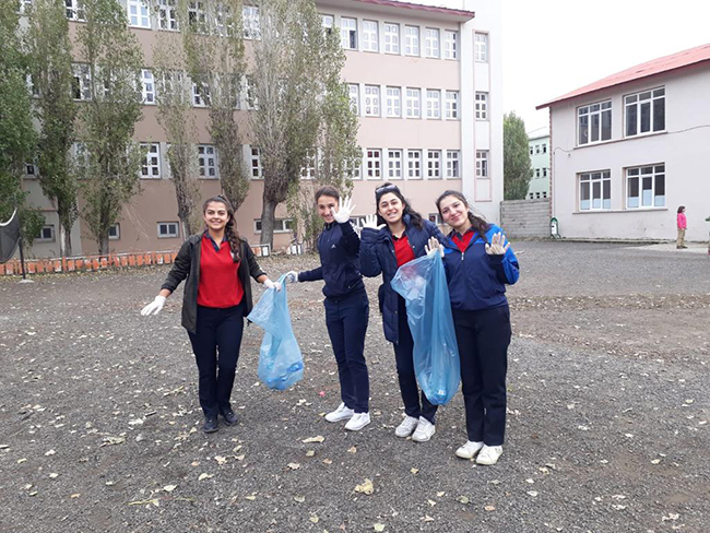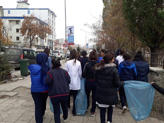 Kars Atatürk Mesleki ve Teknik Anadolu Lisesi El Sanatları sınıfı öğrencileri, “Doğaya saygı duyalım, çevremizi temiz tutalım” sloganıyla çöp toplama etkinliği yaptı.