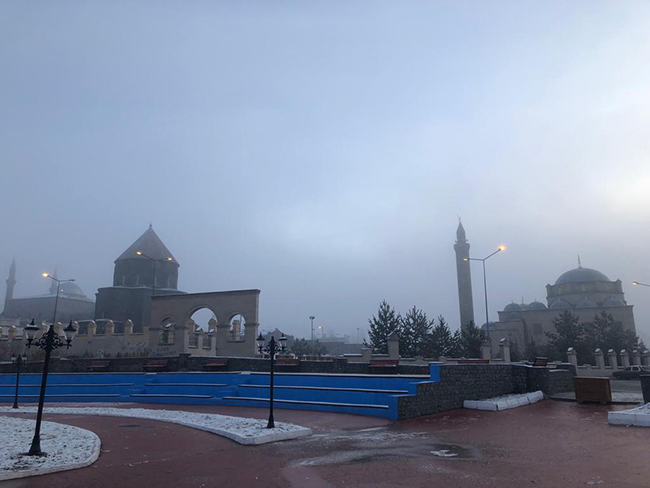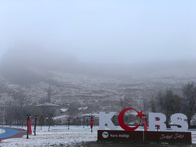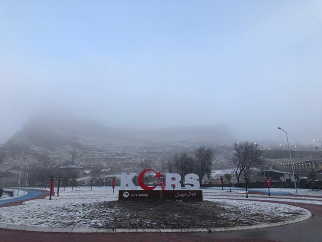 Kars’ta dün etkili olan karla karışık yağmur yerini gece saatlerinde sise bıraktı.