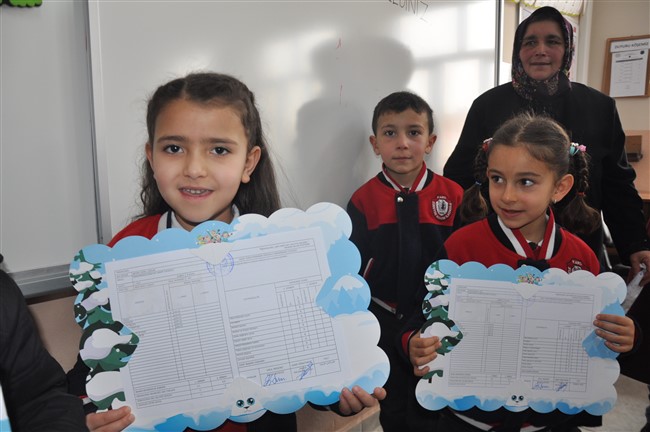 Karnelerini sabırsızlıkla sıralarında oturarak bekleyen öğrenciler öğretmenlerinden bir bir karnelerini alarak ailelerine gösterdi. İlk kez karne alan Zübeyde Hanım İlkokulu 1/B sınıfı öğrencileri ise meraklı gözlerle karnelerine baktılar. Karne almanın heyecanını öğrenciler kadar velilerin de yaşadığı gözlenirken, okulda çocuklarına verilen eğitimden ve okul idaresinden duyduklarını memnuniyeti ifade ettiler.