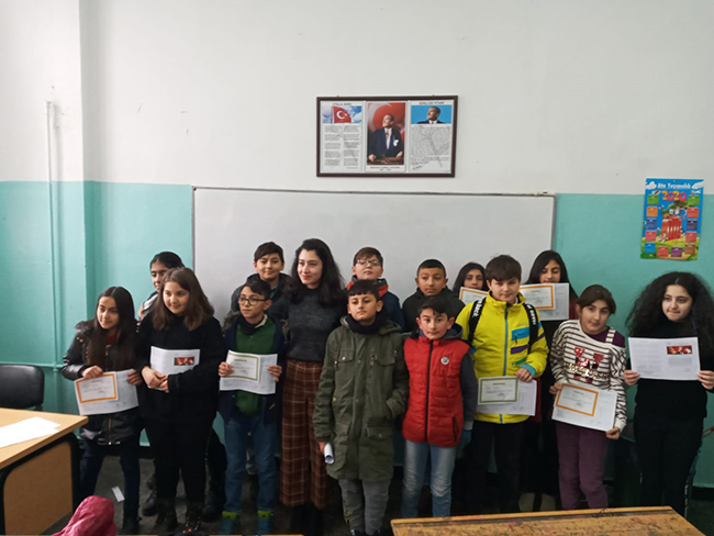 Eğitim öğretim yılının son gününde öğrenciler tahtaya “iyi tatiller, “yarıyıl tatili” ve “yaşasın tatil” yazarak tatile girmenin heyecanını öğretmenleri ve velileriyle birlikte paylaştı.