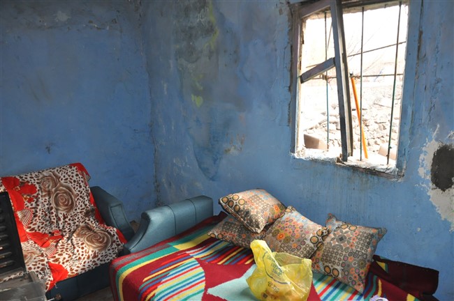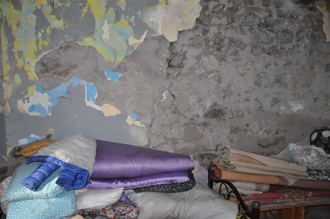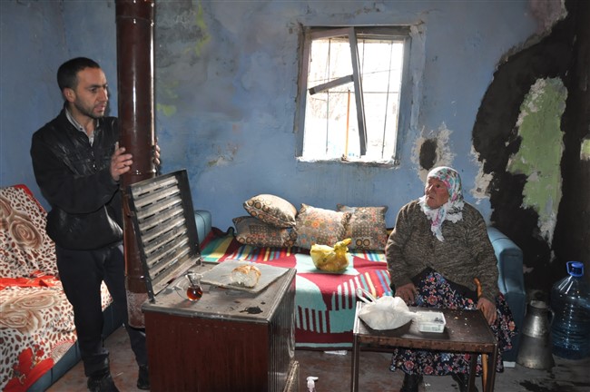 Evin sıvalarının döküldüğü, camlarının ve çatısının soğuktan korunmak için naylonla kaplandığı, 1 oda ve 1 girişi olan evde oğlu ile kiracı olarak yaşayan Sevim nine, “Allah’a çok şükür yaşıyoruz, yemeğimiz varsa yiyoruz, yakacağımız varsa yakıyoruz. Dün öğrenciler geldi bize destek verdi, evin sıvasını biraz yaptılar, kapıları ve pencereleri yapacaklar.” ifadesini kullandı.