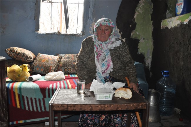 Yaşlılık maaşı ve engelli oğlu İsmail Dağar’ın iş göremezlik maaşı ile gecekonduda hayata tutunmaya çalışan Sevim nine, komşularının ve hayırseverlerin desteğiyle yaşamaya çalışıyor.