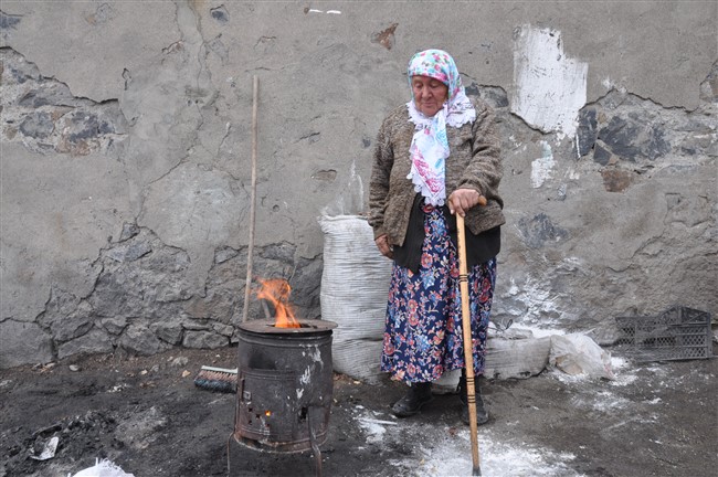 Sosyal Yardımlaşma ve Dayanışma Vakfı tarafından 2-3 ayda bir 200 liralık ve kömür yardımı aldığını söyleyen Sevim nine, borç ile aldığı kömür sobasını yakmakta zorluk çektiğini ifade etti. Komşuları tarafından küçük bir sobanın kendisine verildiğini ve ısınmak için bunu daha kolay yakabildiğini söyleyen Sevim nine, “Yaşlıyım elim ayağım tutmuyor, oğlum da engelli pek beceremiyor büyük sobayı yakamıyoruz, sağ olsunlar komşularımız bu sobayı verdi bununla ısınıyoruz.” dedi.