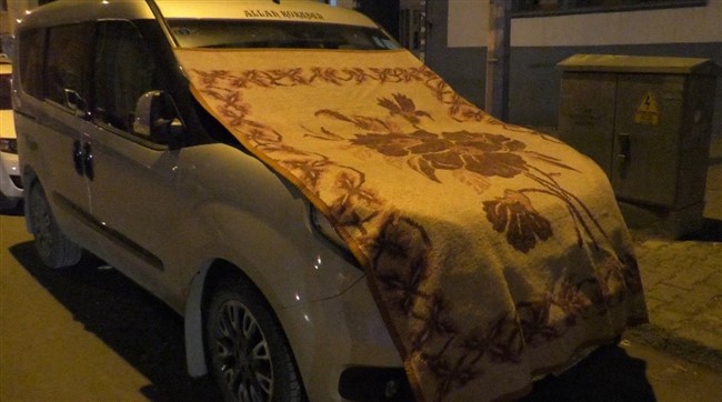 Kars’ta araçlara halılı ve battaniyeli koruma