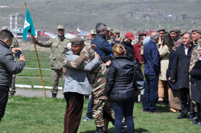 Harbiye Marşı'nın okunmasının ardından eğitimlerini tamamlayan Mehmetçikler, tören geçişi yaptı ve terhis oldu. Yemin eden Mehmetçikler terhis olarak aileleriyle hasret giderdi.