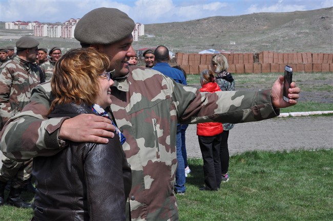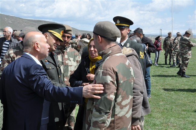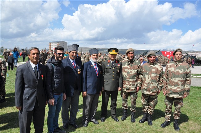 14. Mekanize Piyade Tugay Komutanı Tuğgeneral Özgür Nuhut törende Mehmetçiklerle ve aileleriyle hatıra fotoğrafı çektirdi.