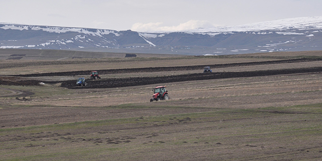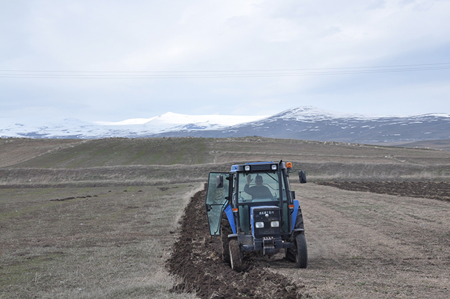 Kars’ta ekin, biçim zamanının kısa sürdüğünü ifade eden çiftçiler, “Kars’ta Nisan ayı itibariyle ekinlerimizi ekmeye başladık. Önce tarlalarımızı sürüyoruz. Ardından da ekimlerimizi yapıyoruz. Biliyorsunuz Kars’ta bahar ve yaz kısa sürüyoruz. Nisan ayındayız halen dağlarda kar var. Bugün yarın bahar yağmurları başlar, hazır havalar güneşli ve sıcak gidiyorken, biran evvel tarla işlerimizi bitirmek zorundayız” dediler.
