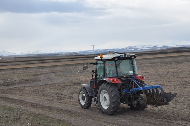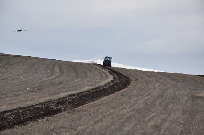 Havaların ısınmasıyla birlikte tarlalarının yolunu tutan çiftçiler, güneşli ve sıcak havayı fırsat bilerek traktörleriyle tarlalarını sürüyor. Tarlarının sürme işlemi tamamlayan çiftçiler, arpa ve buğdaylarını ekiyor.