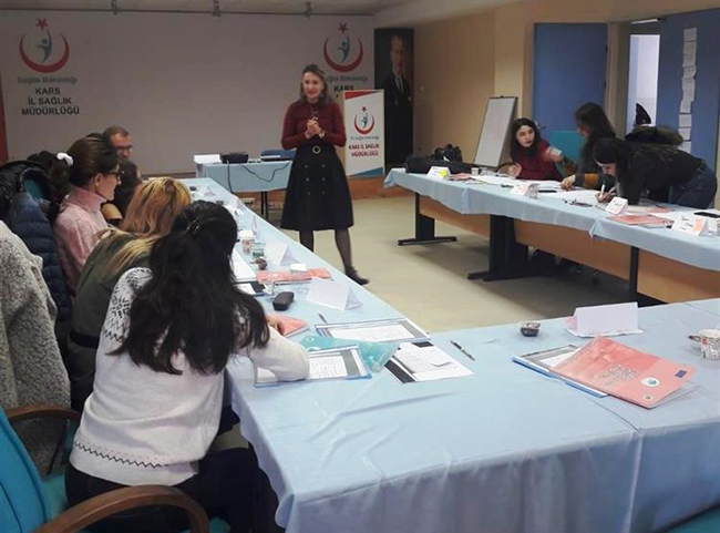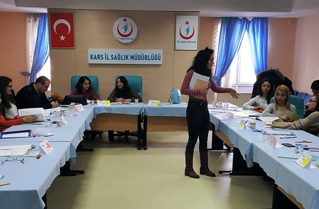 26-30 Kasım 2018 ile 24-28 Aralık-2018 tarihleri arasında Kars’ta ki çeşitli sağlık birimlerinde görevli aile hekimi, aile sağlığı ve toplum sağlığı merkezinde görevli 33 sağlık personeline, Üreme Sağlığı Eğitimcileri tarafından cinsel sağlık ve üreme sağlığı eğitimi verildi.