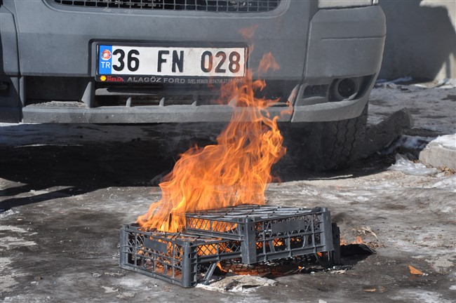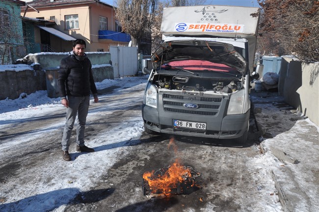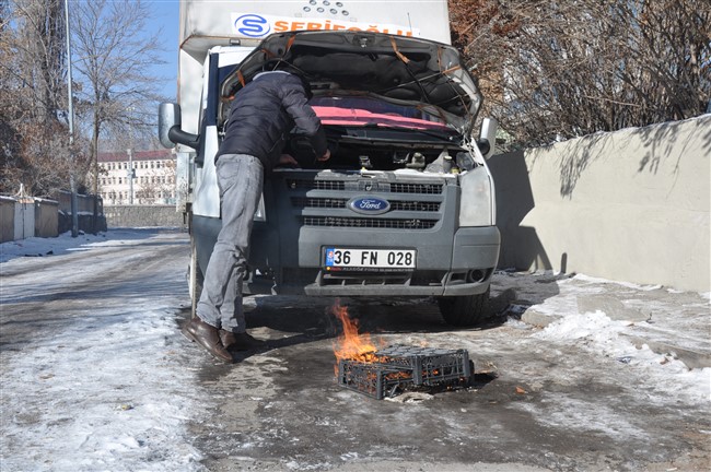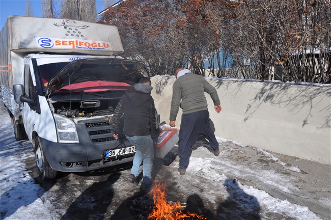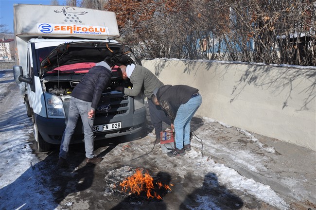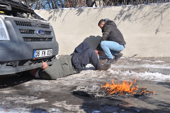 Hava sıcaklığının eksi 27 dereceye düştüğü Kars'ta, çok sayıda araç dondu. Donan araçları çalıştırmak için bazı vatandaşlar araçlarının altında ateş yakarken bazı vatandaşlar ise takviye vererek çalıştırdılar.