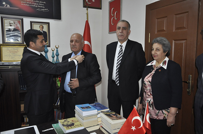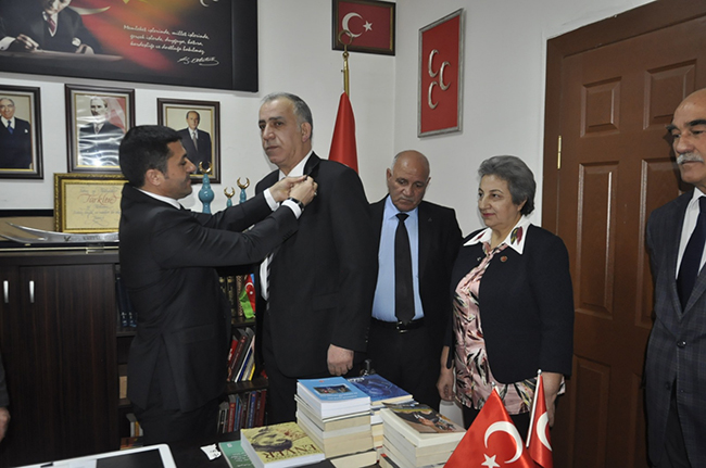MHP Kars İl Başkanlığında düzenlenen tören ile Belediye Meclis Üyesi Hüseyin Bedel, Taner Ünsal, Tahsin Güngören, Hülya Çağıraşan, Ferit Yenice’ye yeniden rozetleri İl Başkanı Tolga Adıgüzel tarafından takıldı.