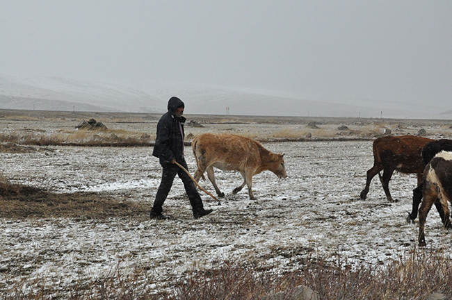 Kar yağışı ve tipiden dolayı hava sıcaklığının çok hızlı düştüğüne dikkat çeken çobanlar, kar yağışı altında hayvanlarını yakın köylere sürmeye çalıştı. Tipiden dolayı hayvanlarını bir araya toplamakta zorlanan çobanlar, adeta zamanla yarıştı.