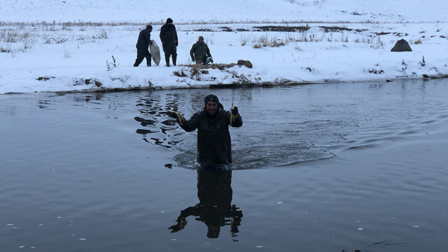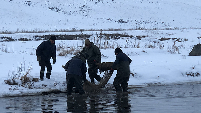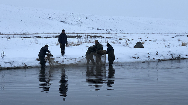Kars’ta köylüler buz gibi sudan balık ihtiyacını karşılıyor