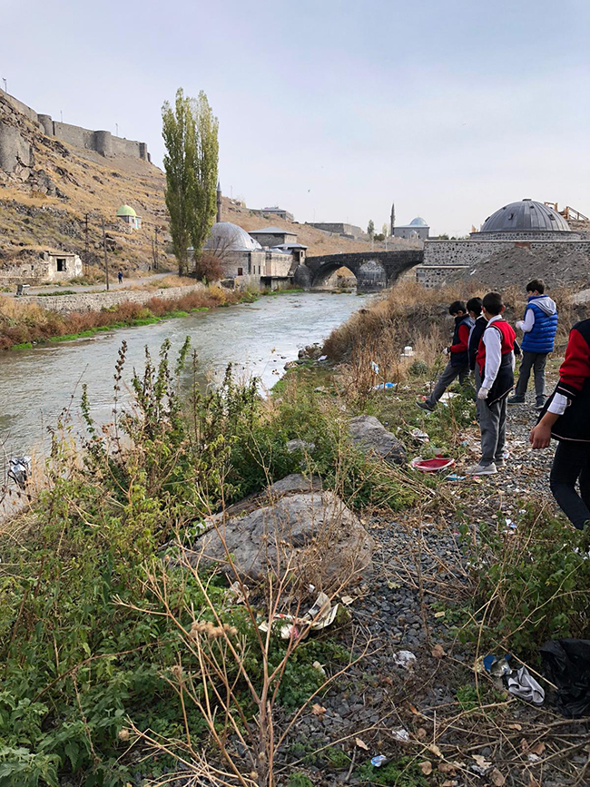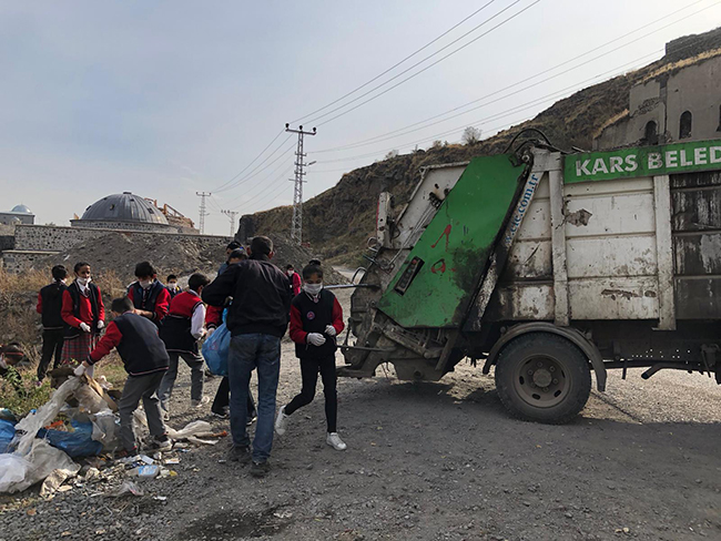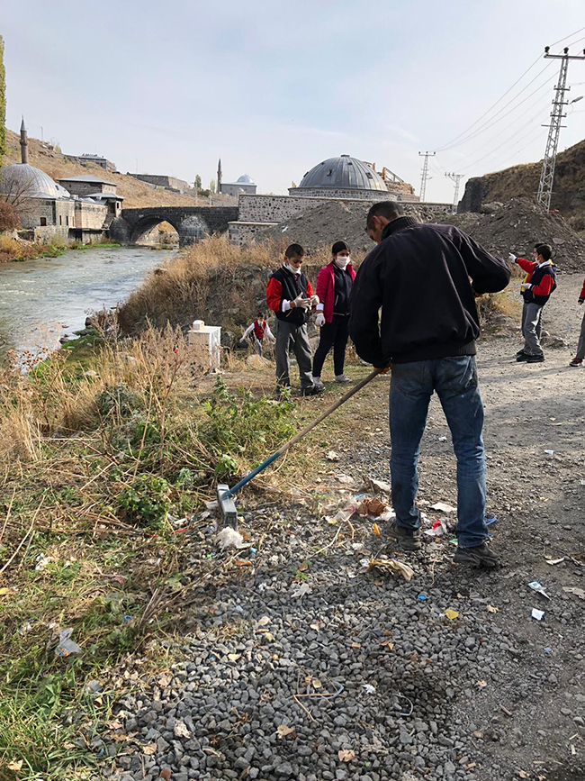 Mihralibey Ortaokulunun öğrencileri bu hedef doğrultusunda Kars’ın içinden geçen ve kıyılarında çöplerin bulunduğu Kars Çayı’nın etrafında temizlik faaliyetlerini gerçekleştirdiler.
