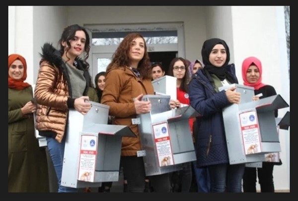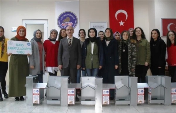 Kars ve Kredi Yurtlar Kurumu Rabiatül Adeviyye Kız Yurdunda kalan öğrenciler, eğitim faaliyetleri kapsamında harçlıklarından biriktirdikleri para ve Kars esnafından aldıkları destekle sokak hayvanları için beslenme odakları yaptırdı.