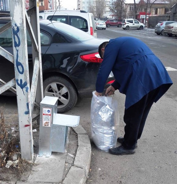 Duyarlı öğrenciler, yaptırdıkları 26 adet beslenme odağını il merkezinde kedi ve köpeklerin en yoğun olduğu bölgelerdeki çöp kutuları ve ışıklandırma direklerin dibine monte ettirdiler.