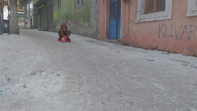 Kars’ta okulların yarıyıl tatiline girmesi öğrencileri sevindirdi. Gün içerisinde havanın güneşli olmasını fırsat bilen bazı öğrenciler, kızaklarını alarak kaldırımlara koştu. Kaldırımda bulunan karların üzerine öğrenciler kızakla kaymanın keyfini yaşadı.