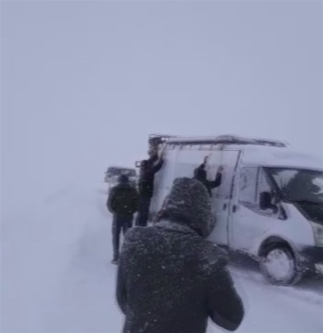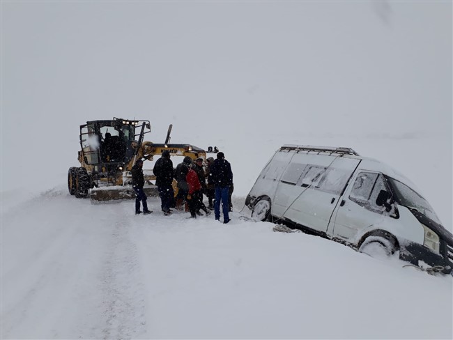 Okullarına gitmekte olan öğretmenler ise kara saplanan minibüste mahsur kaldı. Mahsur kalan öğretmenlerin imdadına Özel İdare karla mücadele ekipleri yetişti.