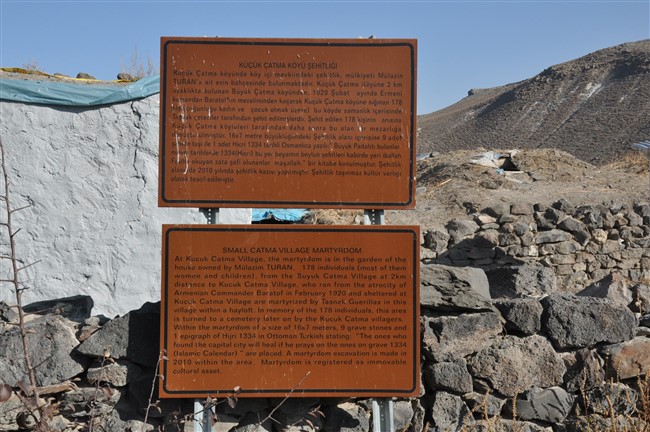 Küçük Çatma Köyü’nde 2010 yılında yapılan kazıda çıkan cesetler, Ermenilerin yaptığı acımazsız katliamları gözler önüne bir kez daha sererken, yapılan kazılarda giysi, elbise parçaları, düğme, kemer ve postalların yanı sıra, şehit edilenlerin kemikleri ve çok sayıda kafatası ortaya çıkarılmıştı. Kaderiyle baş başa bırakılan şehitlik tamamen harabeye döndü. Köylüler ise kendi imkanlarıyla şehitliği korumaya çalışıyor. Köylüler yetkililerden Küçük Çatma Şehitliği’nin koruma altına alınmasını istiyor.