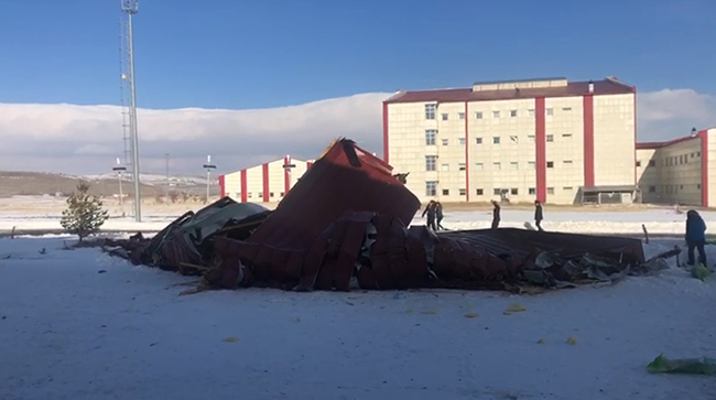 Kars’ta etkili olan aşırı rüzgar, Kafkas Üniversitesi yerleşkesindeki fakülte binalarının çatılarını uçurdu.