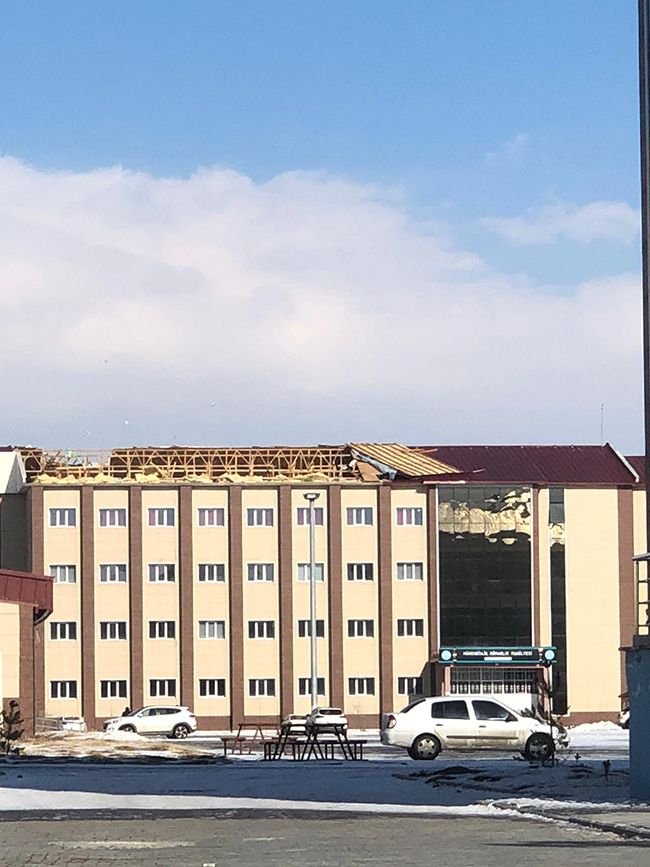 Aşırı rüzgardan etkilenen ve fakülte binalarının çatısı üniversitede, görevliler vatandaşları uyararak bölgen uzaklaştırdı. Şiddetli rüzgar kentte etkili olmaya devam ediyor.