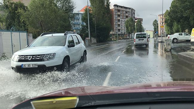 Cumhuriyet Caddesi ile Celal Aras Caddesinin kesiştiği noktada patlayan su tonlarca suyun boşa akmasına neden olurken cadde de su altında kaldı.