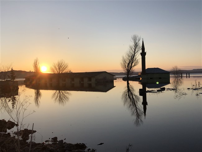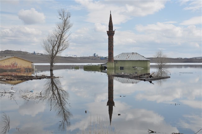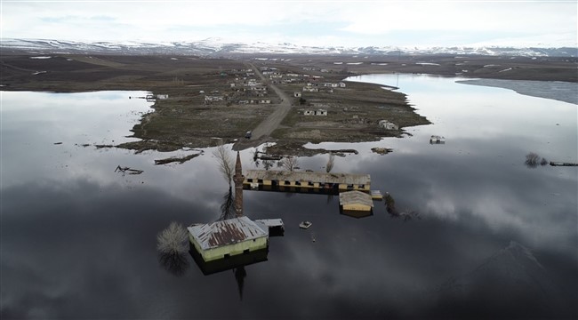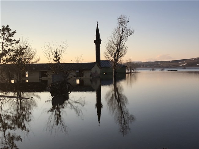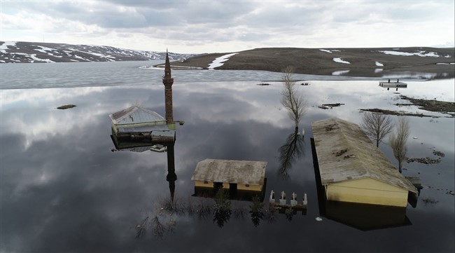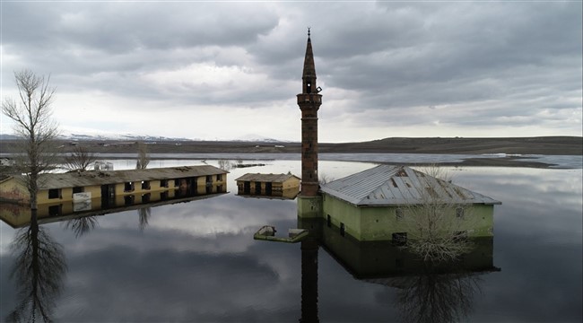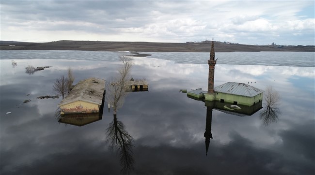 Kars’ta sular altında kalan cami ilk kez havadan görüntülendi