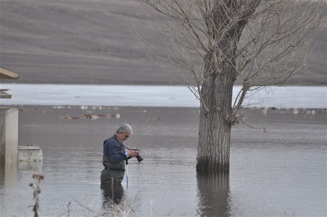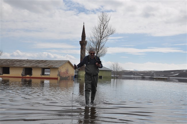 Özgen Beşli, “Serhat şehri Kars’ta yaşayan bir vatandaş olarak şehrimize karşı bizimde sosyal sorumluluk bilinciyle yapmamız gereken şeyler var. Ben bu camiyi ve köyü 2008 yılının 10’uncu ayında çalışmıştım. Tabii o zaman sular altında değildi. Okulun içerisine ve camiye girdim çalıştım. Burayı sular altında görünce eski kadrajları gelip çalışmak istedim” dedi.