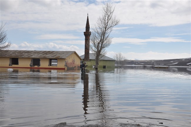 Kars’ta baraj gölü suları altında kalan Çamçavuş Camii havadan görüntülendi. Sular altında kalan camiye fotoğraf sanatçıları da yoğun ilgi gösterdi.