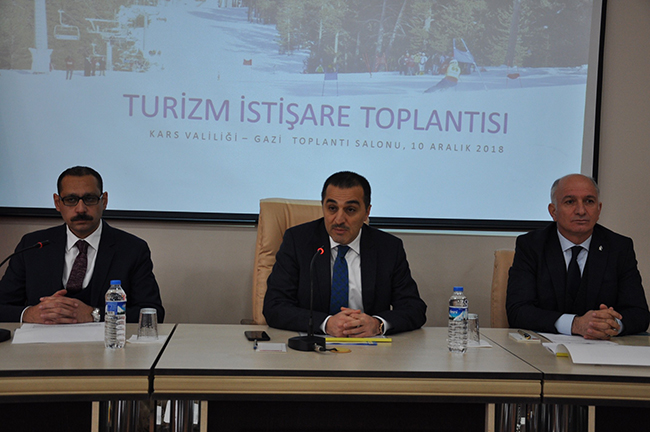 Kars Valiliği Gazi Toplantı Salonu’nda düzenlenen toplantıya, Vali Türker Öksüz, Belediye Başkanı Murtaza Karaçanta, Sarıkamış Kaymakamı Yusuf İzzet Karaman, Sarıkamış Belediye Başkanı Göksal Toksoy, İl Kültür Müdürü Hakan Doğanay, turizm sektörü yönetici ile çalışanları katıldı.