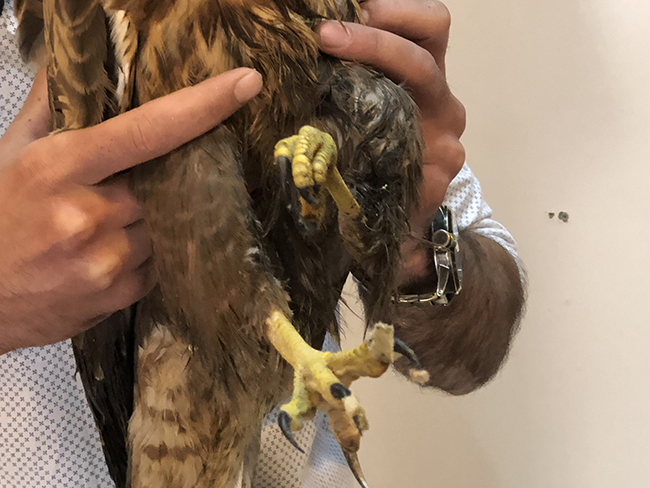 Daha sonra hayvansever vatandaştan alınan kızıl şahin tedavisi için Kafkas Üniversitesi Yaban Hayvanı Kurtarma ve Rehabilitasyon Merkezine götürüldü. Tedavi altına alınan kızıl şahinin güçten düştüğü ve ayağında kırık bulunduğu tespit edildi.