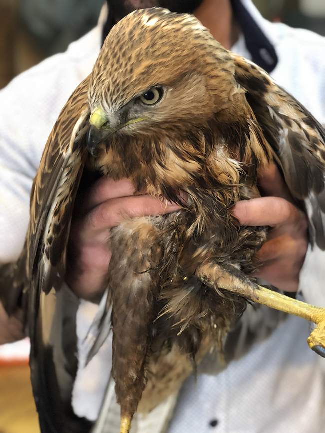 Kars’ta vatandaşların yaralı halde bulduğu kızıl şahin, tedavi edilmek üzere yetkililere teslim edildi.