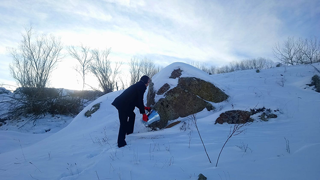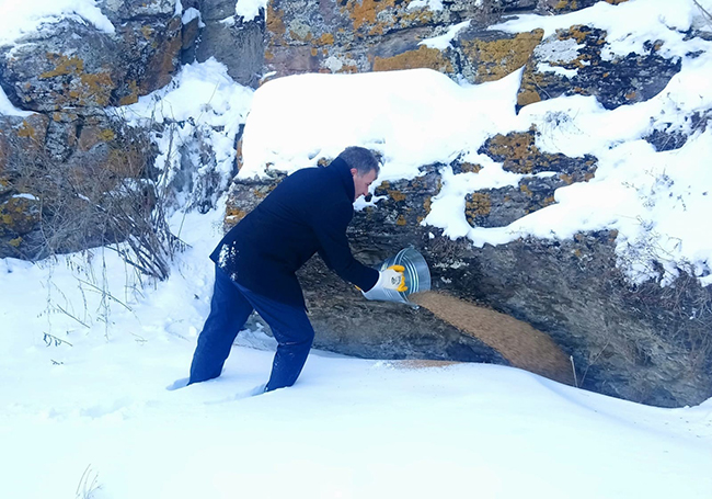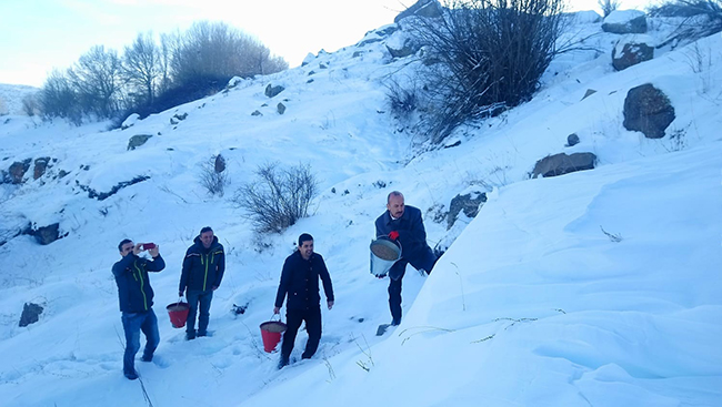 Orman ve Su İşleri Müdürlüğü Doğa Koruma ve Milli Parklar Kars Şube Müdürlüğü koordinesinde, kentteki kurum ve daire müdürleri yaban hayvanları için Kars kırsalında yemleme çalışması yaptı.