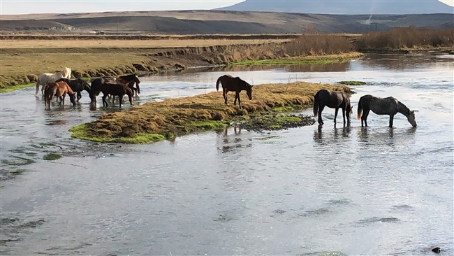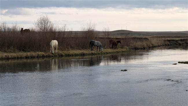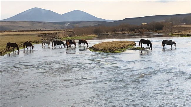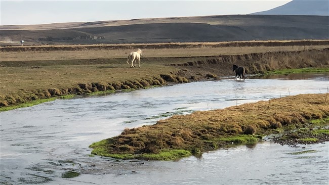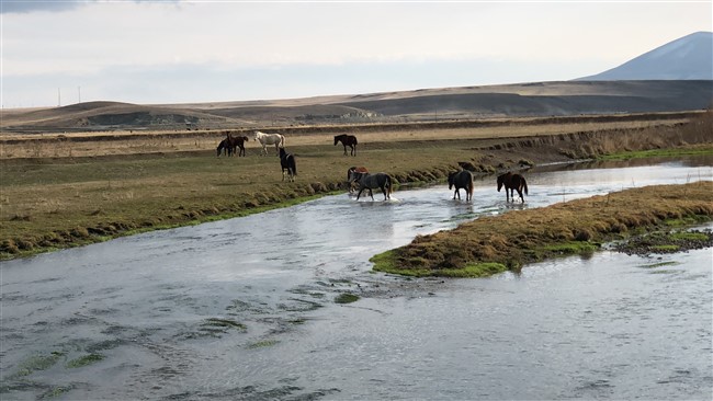 Dikme Köyü ve Çerme Köyü arasında bulunan arazide yaşam mücadelesi veren atlar, hemen köylerin yanı başından geçen Kars Çayı’na gelerek buradan su ihtiyaçlarını karşılıyor. Kars Çayında su ihtiyacını karşılayan at sürüsü daha sonra ovaya yayılıyor.