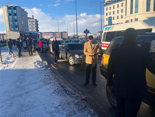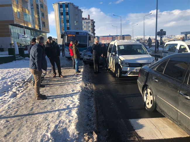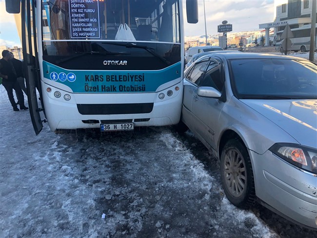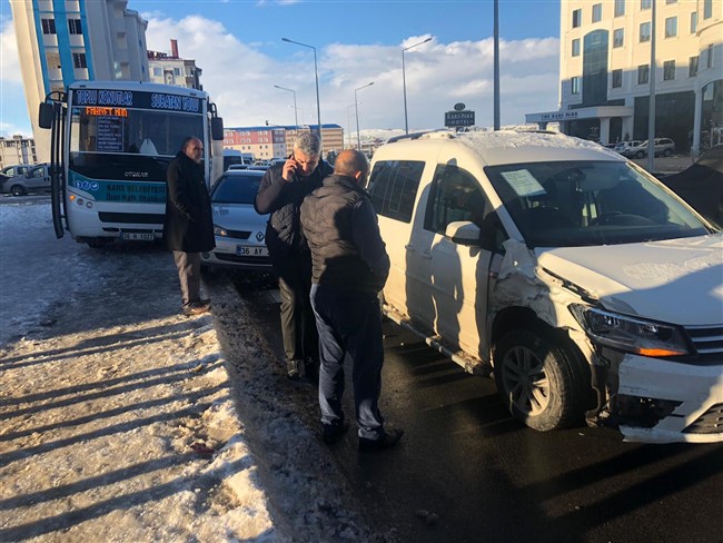 Kars’ta yolun kaygan olması nedeniyle zincirleme trafik kazası meydana geldi.