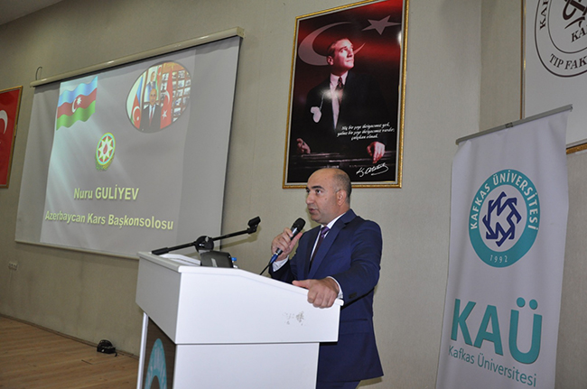 Kafkas Üniversitesi Rektör Yardımcısı Prof. Dr. Mükremin Özkan Arslan, Azerbaycan ve Türkiye’nin bir millet iki devlet olduğunu, dünyada iki kardeş olarak tanındığını ifade ederek Azerbaycan Kars Başkonsolosu’na ve Azerbaycan’dan gelmiş olan öğretim üyelerine teşekkür etti.