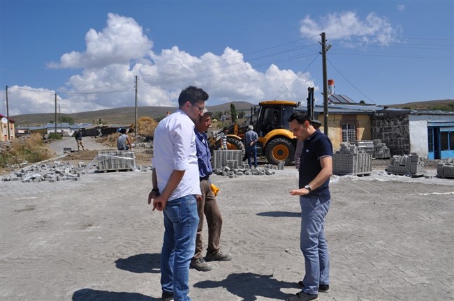 Arpaçay Kaymakamı Abdil Koç, KÖYDES çalışmaları kapsamında yapılan asfalt ve parke taş çalışmalarını inceledi.
