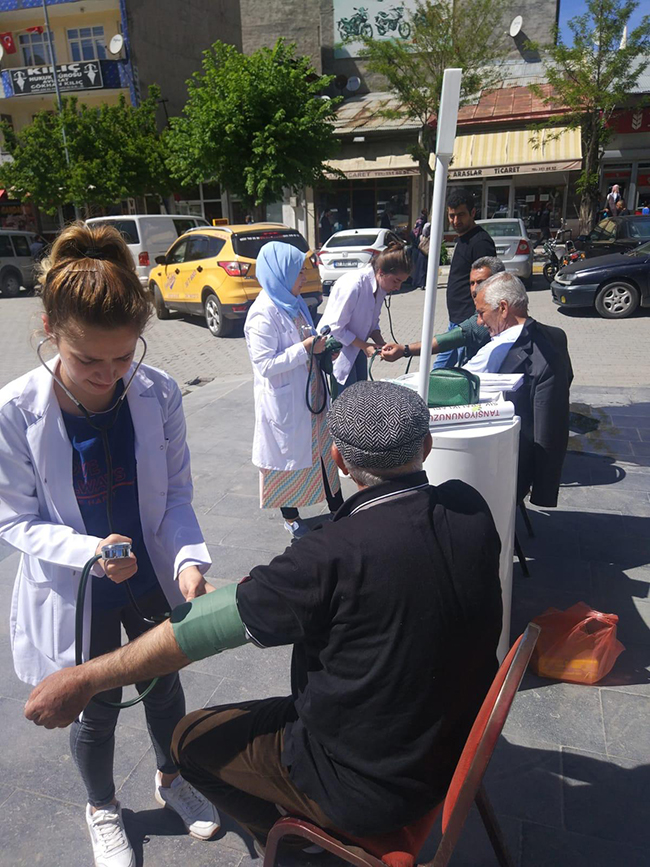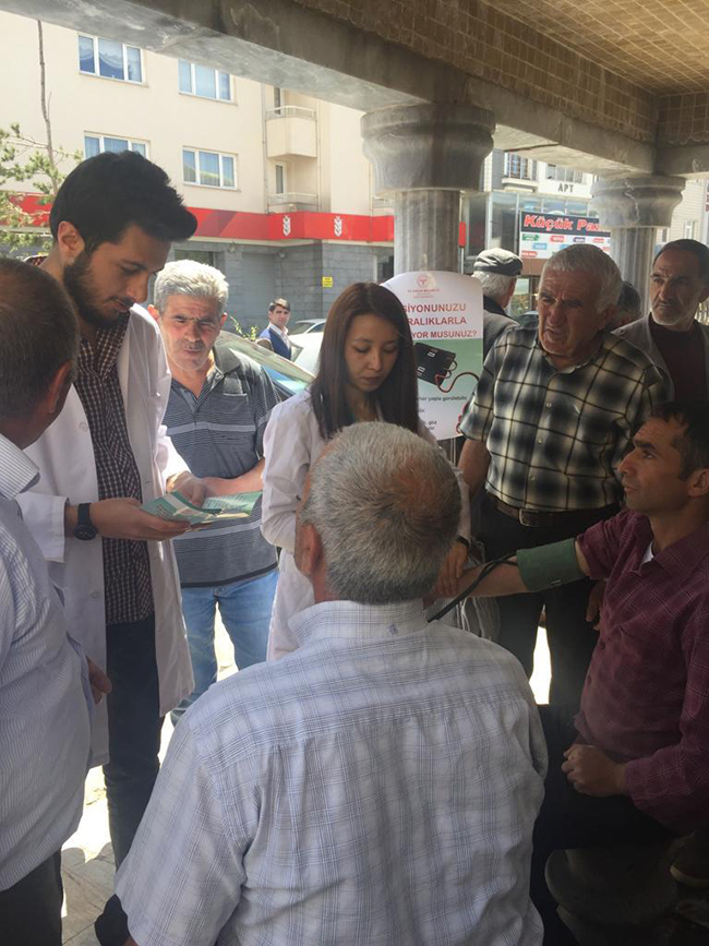 Kent genelinde kurulan stantlarda vatandaşların tansiyonları ölçülerek, Hipertansiyon hakkında bilgiler verildi, broşürler dağıtıldı.