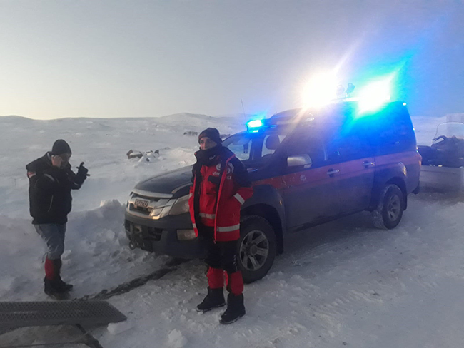 Kars’ın Arpaçay ilçesine bağlı Karakale köyünde KOAH hastası 74 yaşındaki Kula Budak ile Taşlıağıl köyünde yüksek ateşi çıkan 5 yaşındaki bir çocuk, yolların kardan kapalı olması nedeniyle evlerinde mahsur kaldı. Durum UMKE ve AFAD ekiplerine bildirildi. İhbarı alan ekipler, paletli kar aracını da alarak yola koyuldu. Bölgeye gelen ekipleri Arpaçay Özel İdare ekipleri de kapalı bulunan yolları açarak yardımcı oldu.