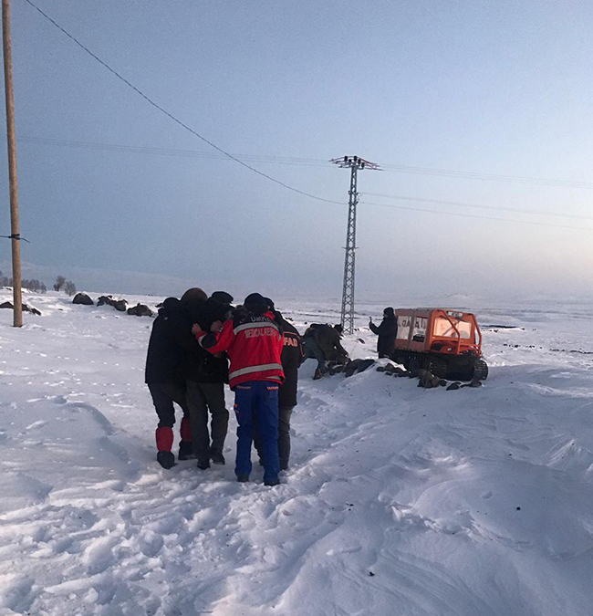Karakale köyü dışında dağlık alanda bulunan Kula Budak için UMKE’nin paletli kar aracıyla ulaşan ekipler, Kula Budak’ı paletli araca taşıdı. Buradan ambulansa taşınan Budak’ın ilk tedavi ambulansta yapıldı. Aynı anda Taşlıağıl köyündeki 5 yaşındaki çocuğa da ulaşan UMKE ve AFAD ekipleri, her iki hastayı yaklaşık 6 saatlik çalışma sonrasında ambulansa alarak Harakani Devlet Hastanesi’ne getirdi. Burada tedavi atına alınan her iki hastanın da durumlarının iyi olduğu öğrenildi.